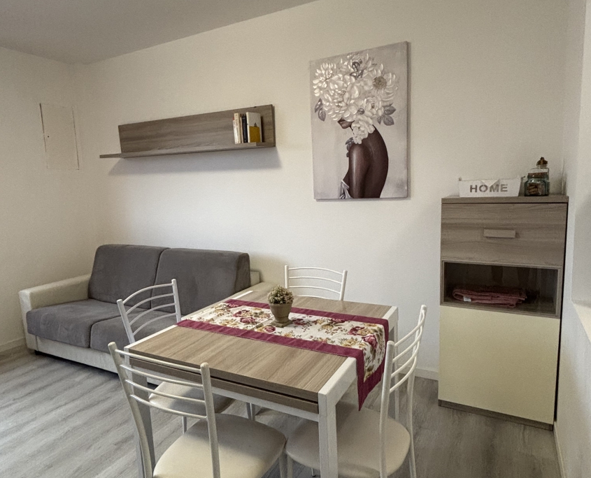 L’appartamentino dispone di una camera con letto matrimoniale e di un divano letto a 1/2 mezza.